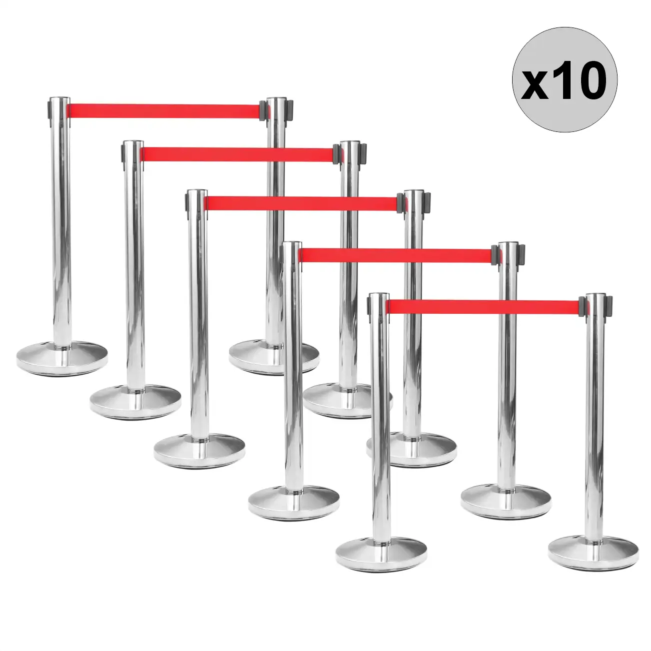 Pack 10x Postes Separadores com Fita Retrátil 1,5m Controlo Filas