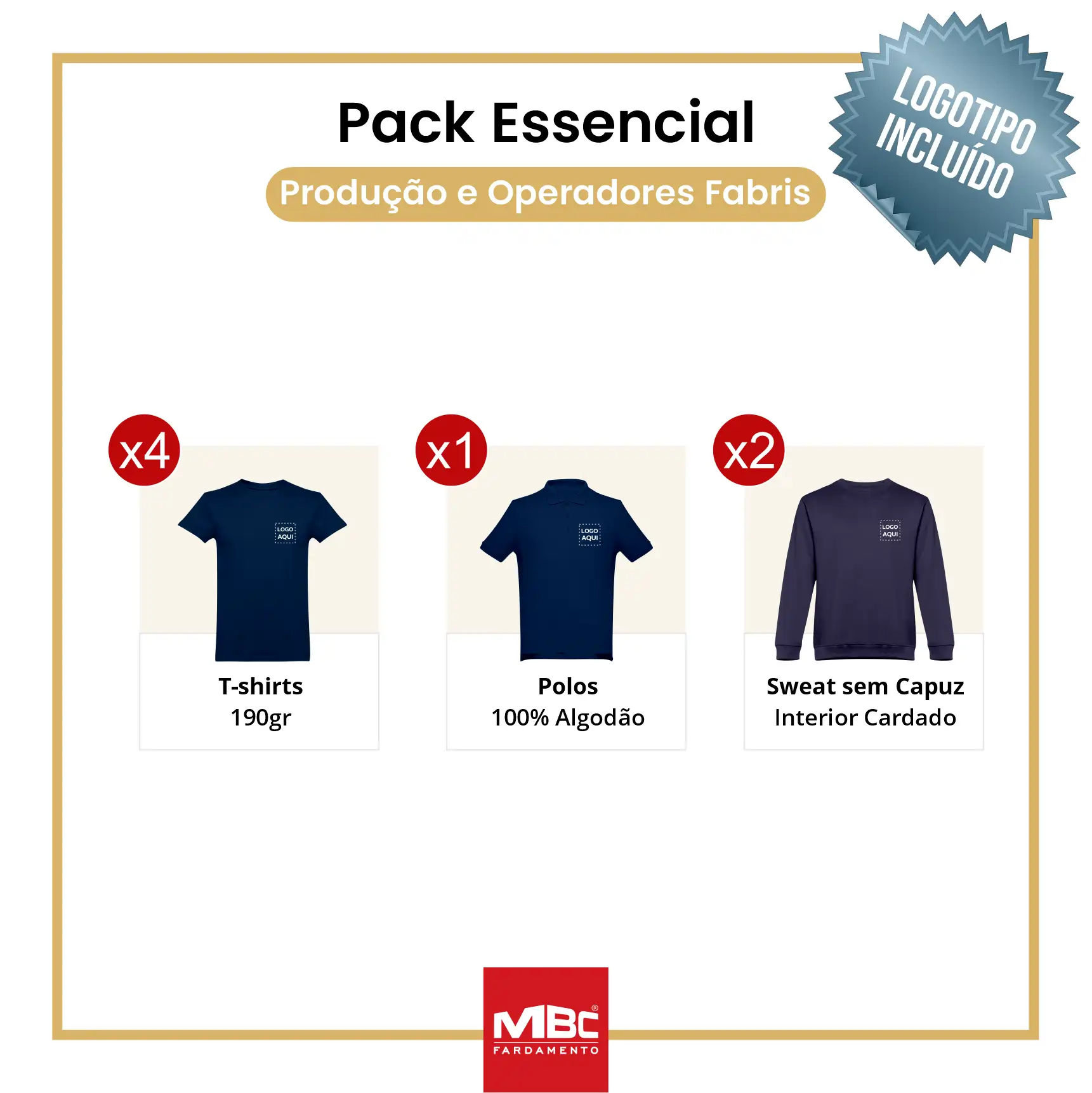 O Pack Essencial Produção e Operadores Fabris foi desenvolvido para profissionais que trabalham em linhas de produção, fábricas, armazéns e ambientes industriais, oferecendo vestuário confortável, resistente e adequado para o dia a dia em ambiente fabril.