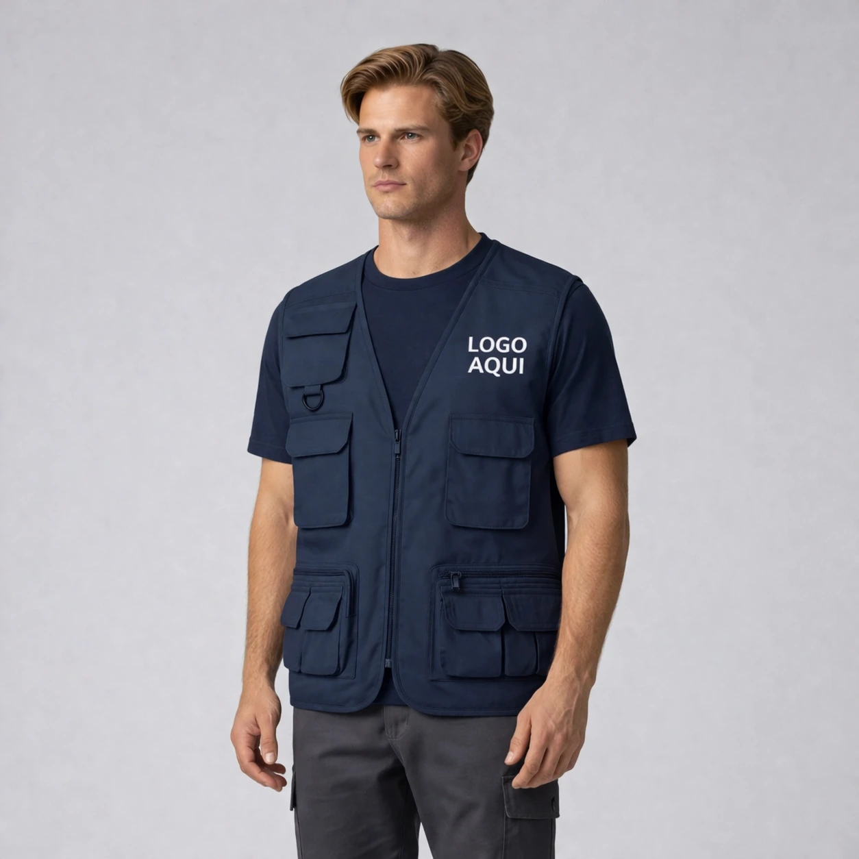 Todos os artigos incluem personalização com o logotipo da sua empresa, aplicada no peito para reforçar a identidade da marca e apresentar uma imagem profissional consistente.