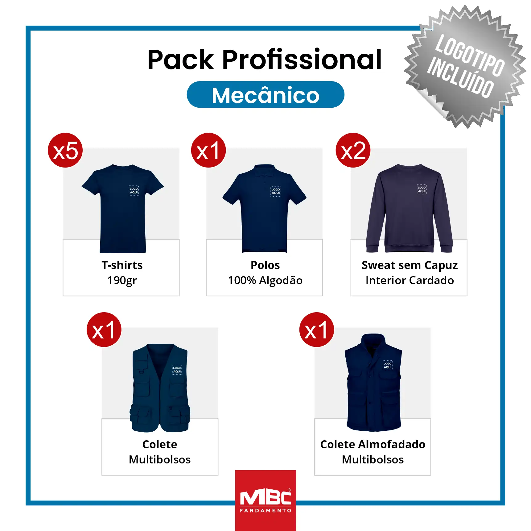 O Pack Profissional Mecânico é a solução ideal para profissionais que procuram vestuário de trabalho completo, funcional e confortável, garantindo praticidade e uma imagem profissional no dia a dia.