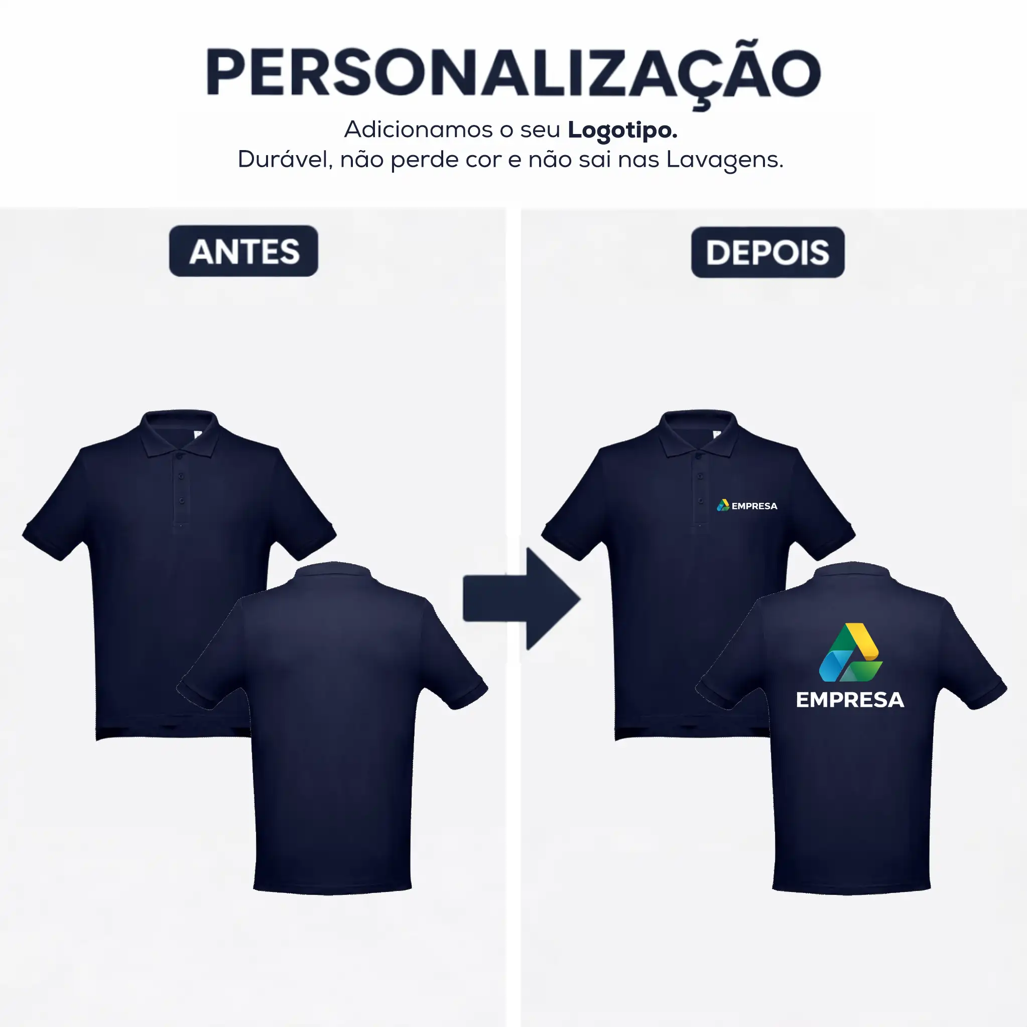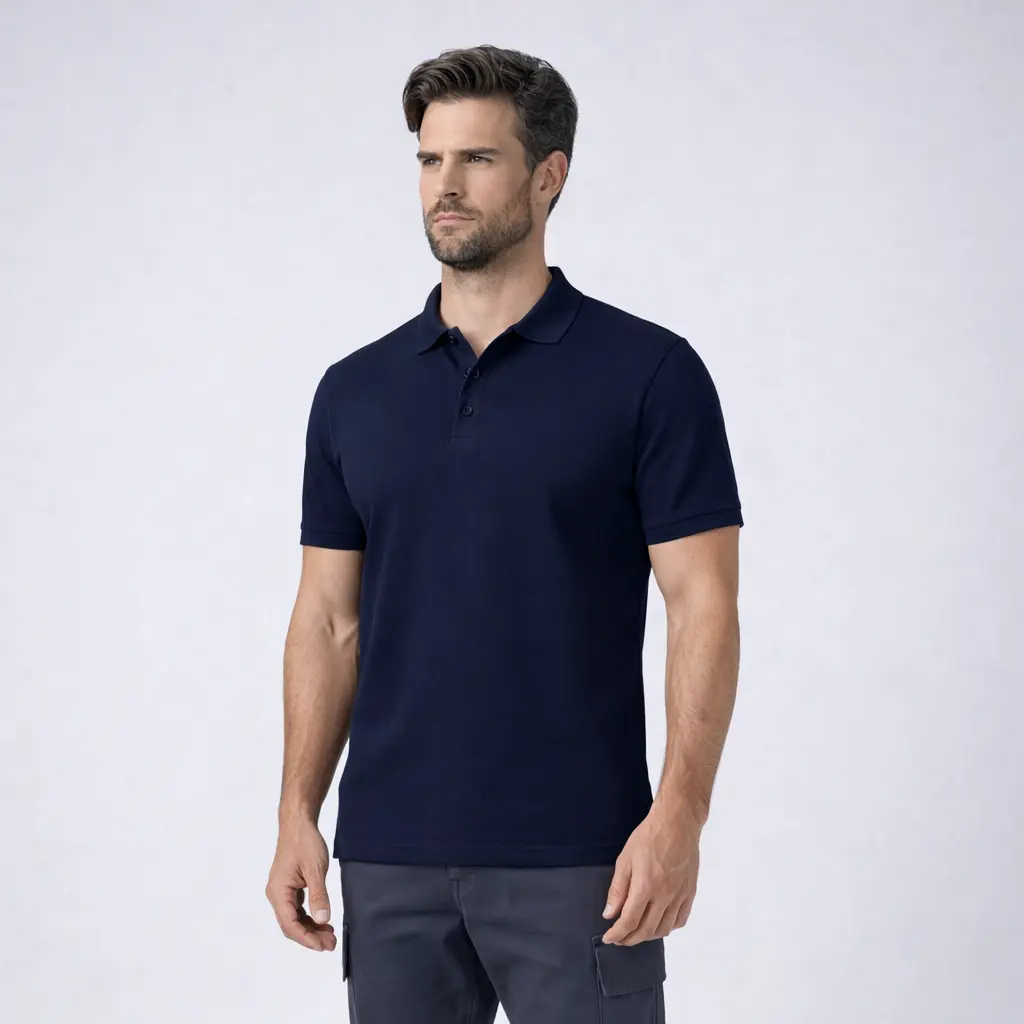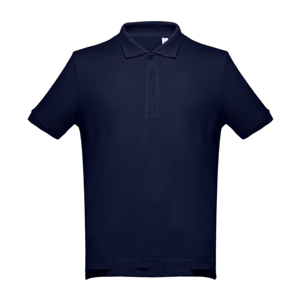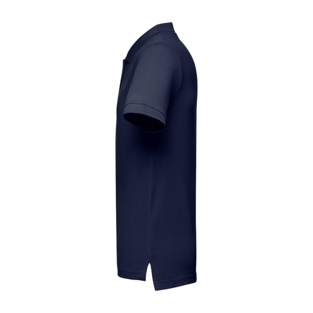 Fita de reforço no interior da gola em piqué.